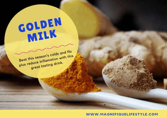 Golden milk is an excellent Indian home remedy for fighting colds and flu if you prefer an alternative remedy; plus it is also good as an immune system builder, it aids healthy digestion, reduces inflammation, increases your metabolism and helps to reduce period pains and alleviates stomach bloating. It’s also great for calming a dairy allergy attack by alleviating your blocked sinuses and assisting to clear the dairy out of your body.
