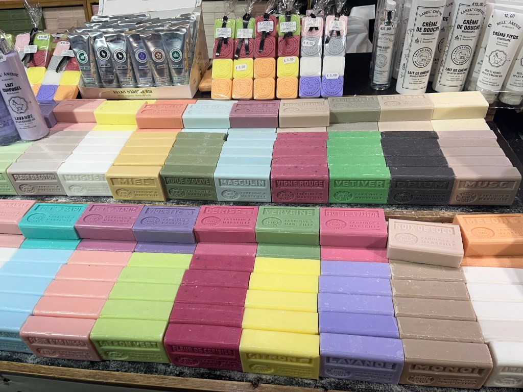 Marseille soap which of course originated from Marseille, can be traditionally found all over France.