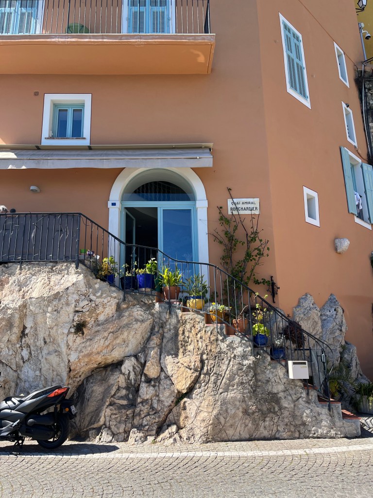 Villefranche is known as a colourful town. You can see a fusion of pastel colours in the photos of these apartments and local shops.